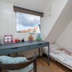 Radiator, houten vloer, dakkapel en airco.