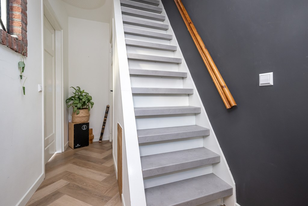 PVC-visgraadvloer, meterkast en trapopgang.