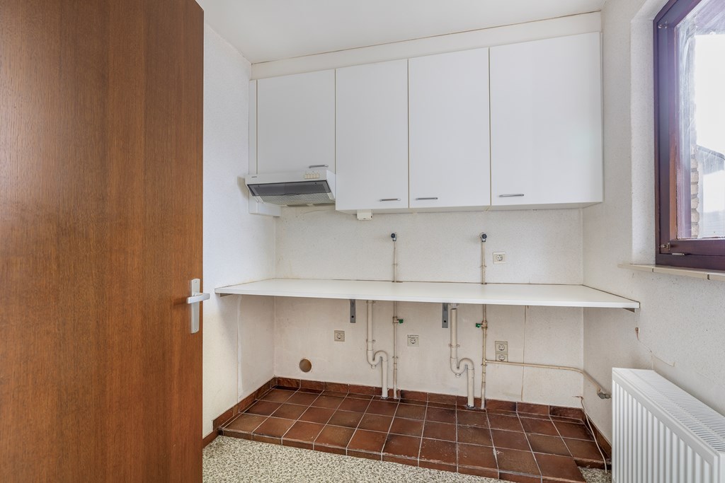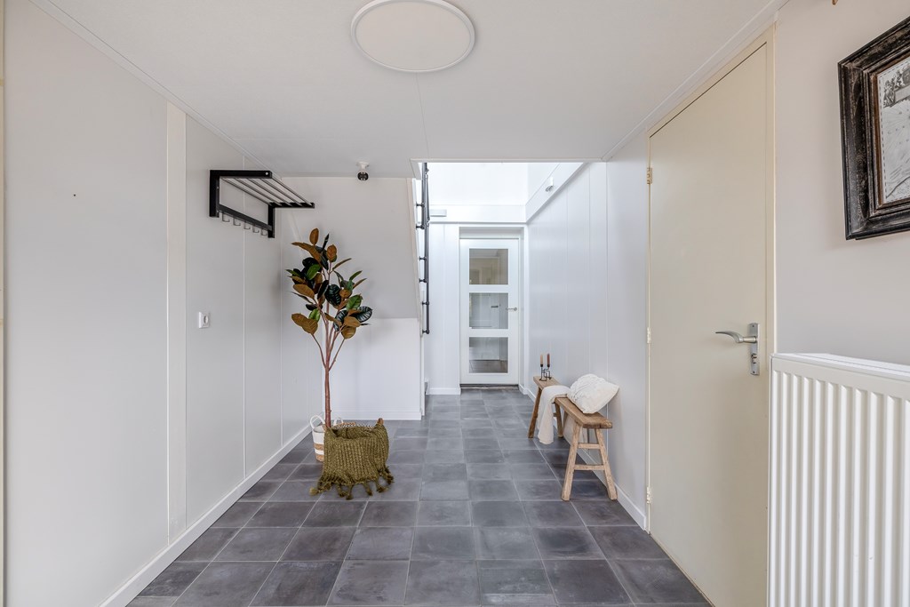 Naast de inloopkast bevindt zich een royale wasruimte met veel kastruimte en 3 witgoedaansluitingen met afvoer en een grote radiator.