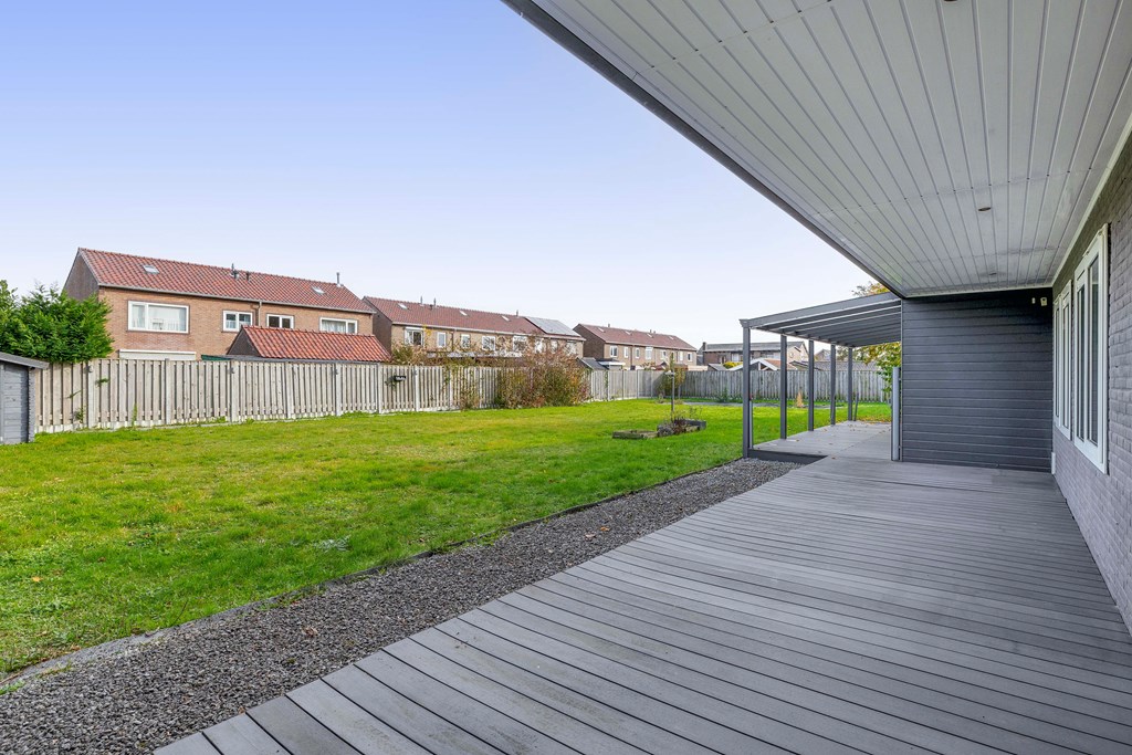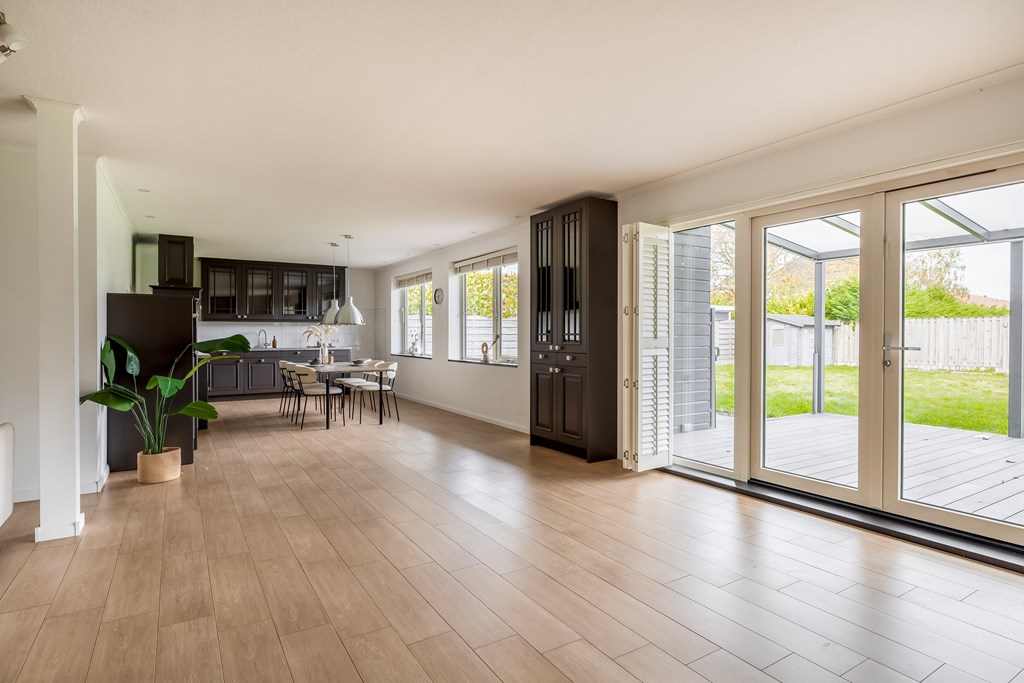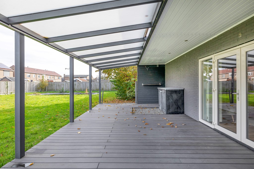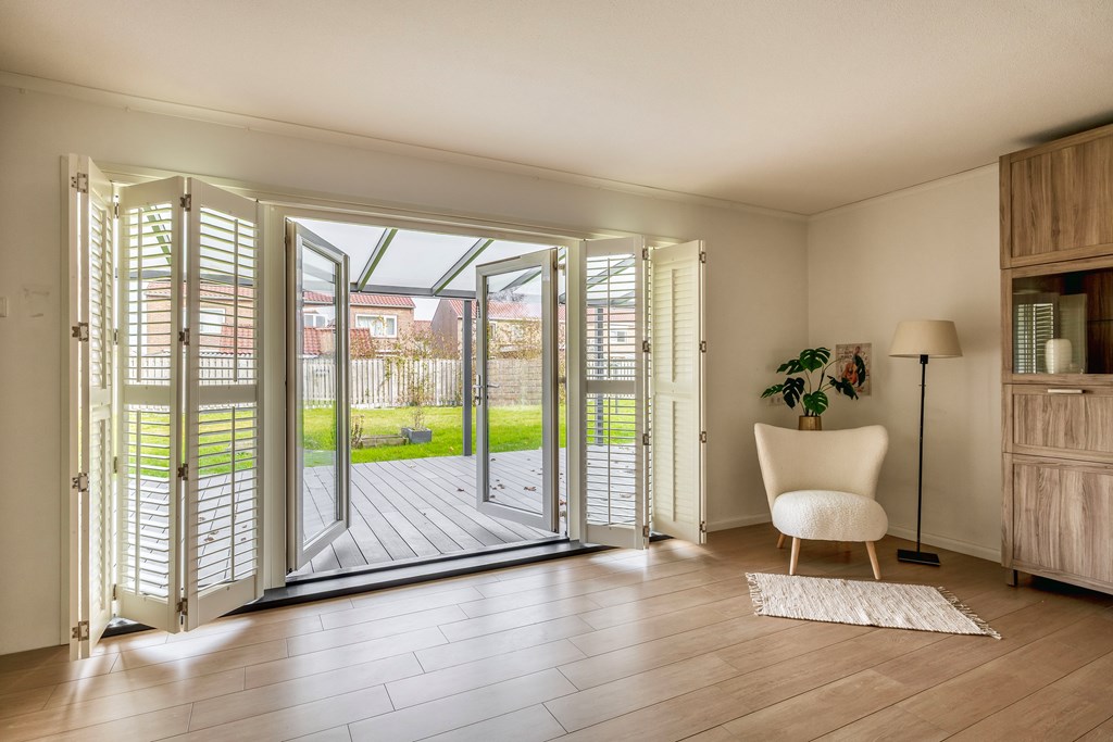 Ook buiten komt u niets tekort. De royale achter- en zijtuin bieden volop privacy en zijn een oase van rust. Of u nu houdt van zonnen, tuinieren, spelen met de kinderen of ontspannen onder het overdekte terras—deze tuin kan het allemaal. Het uitzicht op het groen geeft elke dag een vakantiegevoel.