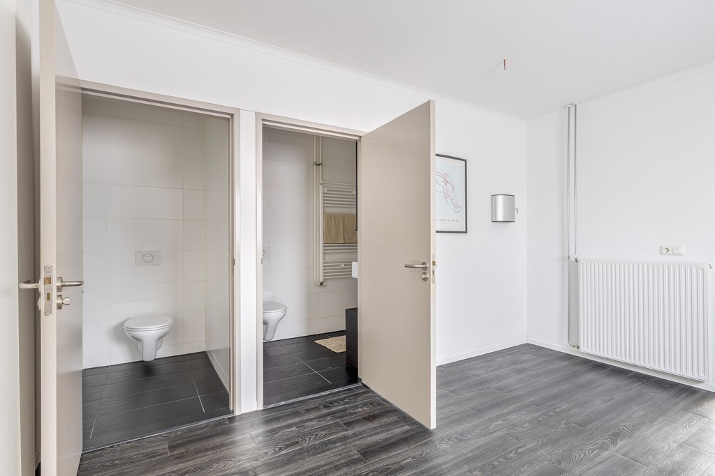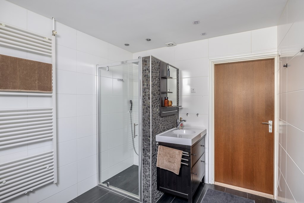 Douche, zwevend toilet, wastafel, handdoekenradiator, mechanische afzuiging en geheel betegeld.