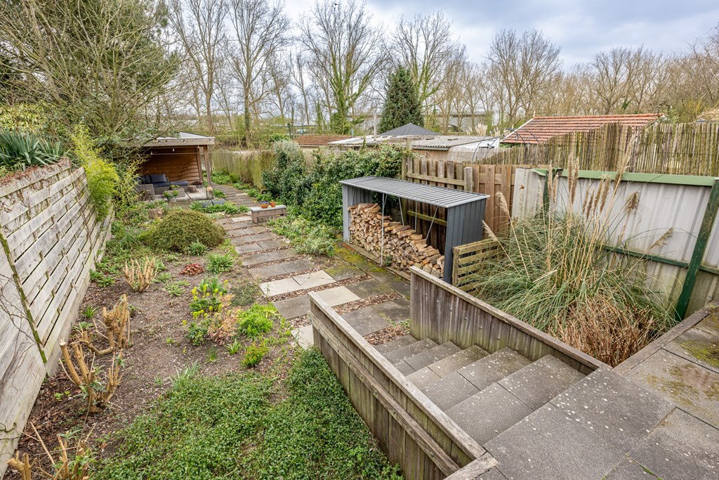 Naast het comfort binnenshuis, geniet u van een zeer royale tuin met een indrukwekkende diepte van circa 40 meter. Deze tuin grenst direct aan water en biedt u een blijvend vrij en groen uitzicht. Achterin de tuin bevinden zich vlonders aan het water, waar u kunt ontspannen met uitzicht op het natuurrijke landschap. De overkapping in de tuin maakt het mogelijk om hier zelfs op minder zonnige dagen volop te genieten van het buitenleven. De overkapping is voorzien van elektra en een waterpunt voor de tuinslang. En alsof dat nog niet genoeg is, beschikt deze woning tevens over een sfeervol dakterras, waar u in alle rust kunt ontspannen met volop privacy en een prachtig uitzicht. In de tuin staat een schuur die is opgedeeld in 2 delen. Een deel wordt gebruikt als opslagschuur maar het andere deel is nu in gebruik als kantoor/hobbykamer. Deze ruimte is keurig afgewerkt en voorzien van een laminaatvloer en elektra.