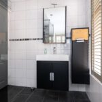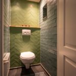 Zwevend, radiator en geheel betegeld.