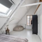 Laminaatvloer, dakkapel en radiator.
