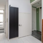 Laminaatvloer, radiator, trapopgang, garderobe en cv-ketel (Intergas 2013).