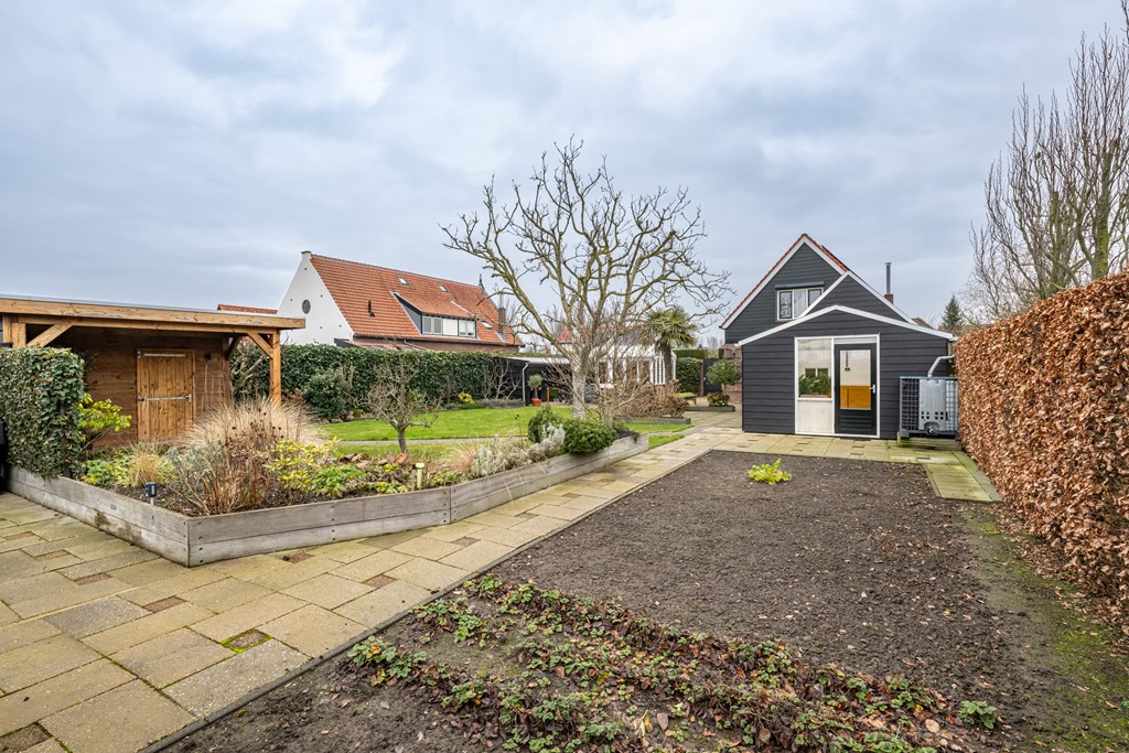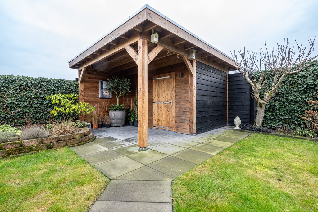 Buitenleven speelt hier een hoofdrol. U beschikt over een diepe achtertuin van circa 27 meter, gunstig gelegen op het zuidwesten. Dat voelt niet alleen ruim, het is het ook: volop zon in de middag en avond, met genoeg plek voor meerdere terrassen, speelruimte, groen en hobby’s. De tuin is bovendien verrassend compleet ingericht met onder andere een moestuin voor uw eigen verse oogst, een tuinkamer waar u langer buiten zit in elk seizoen, een tuinkas voor de liefhebber van planten en groenten, een overkapping voor lange zomeravonden en een berging voor al uw gereedschap en tuinspullen. Dit is zo’n tuin waar u meteen ideeën bij krijgt: borrels met vrienden, een loungeset in de zon, kinderen die vrij kunnen spelen of juist eindelijk die moestuin waar u al jaren van droomt. Onder de keuken is een tras (waterberging) aanwezig van ca. 5.000 liter waar het hemelwater in wordt opgevangen. Dit water is ideaal voor o.a. het besproeien van de tuin.