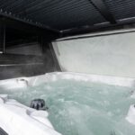 Luxe overkapping met handmatig verstelbare lamellen, sauna en jacuzzi (ter overname), keramische tuintegels, buitenkraan en elektra.