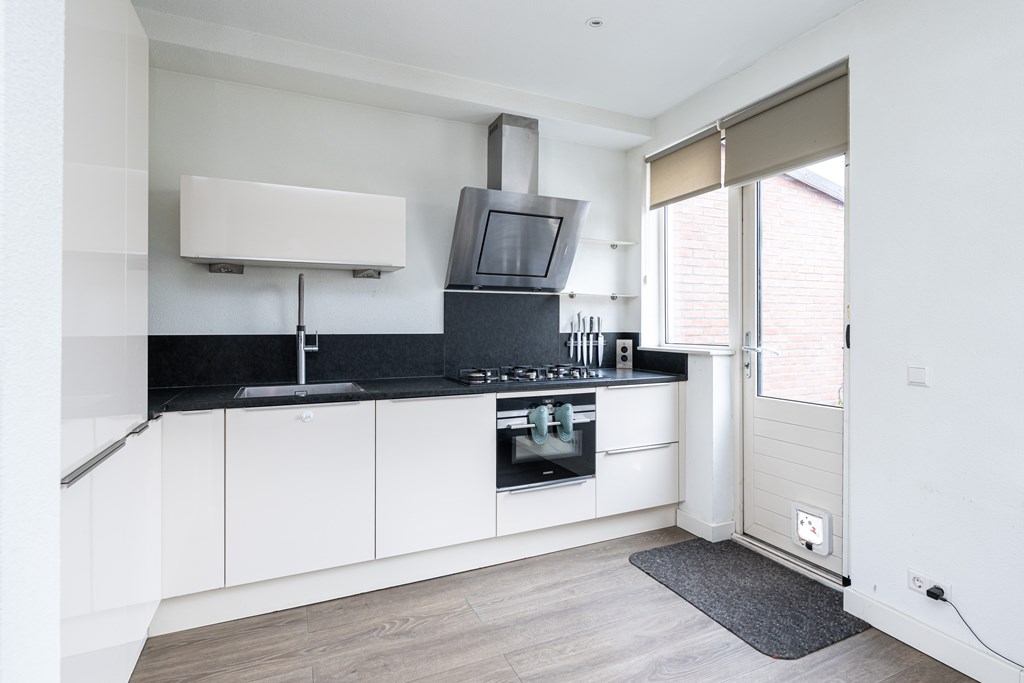 Vloerbedekking, witgoedaansluiting, spots in plafond, kunststof kozijn met draai/kiep raam en trapopgang naar zolder.
