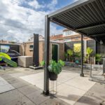 – Luxe overkapping met handmatig verstelbare lamellen;