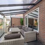 Buitenkamer met glazen schuifwanden, keramische tegelvloer en elektra.