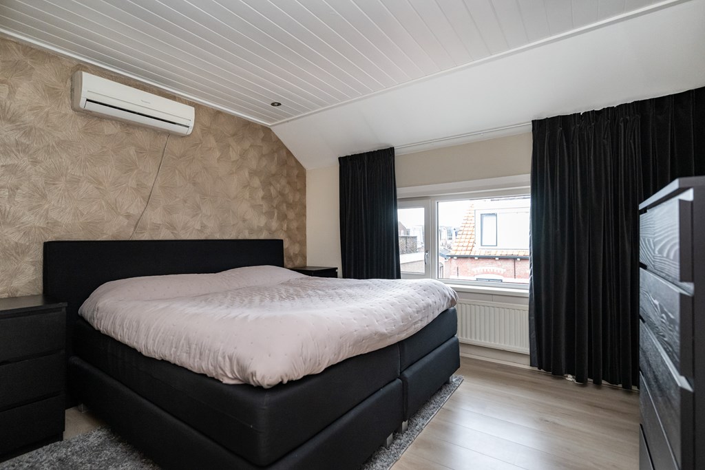Laminaatvloer, radiator, airco, kunststof kozijn met screen handbediend, hor en vaste kast.