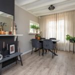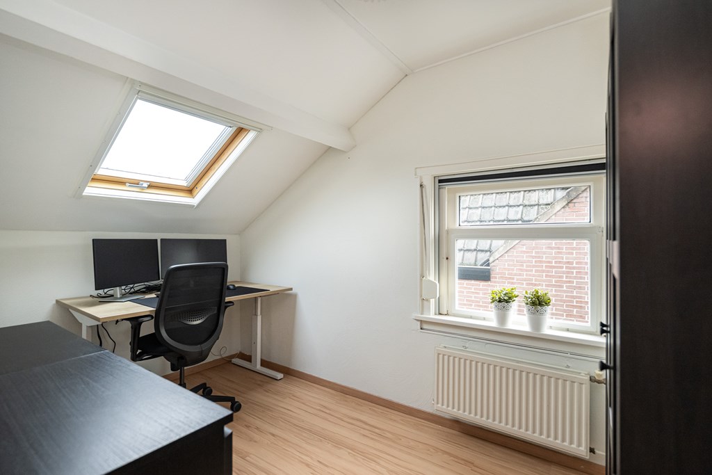 Laminaatvloer, schouw, rolluiken (deels elektrisch en deels handmatig) en radiator.