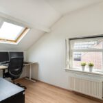 Laminaatvloer, radiator, Velux dakvenster met verduistering en rolluik handbediend.
