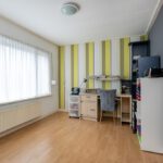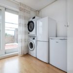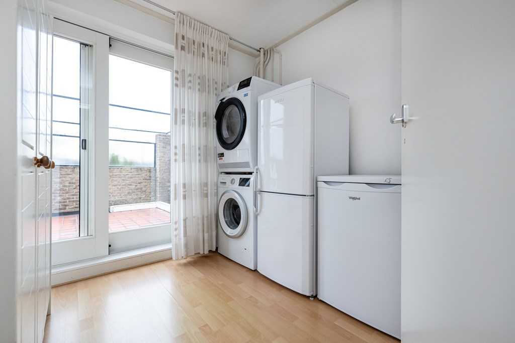 Laminaatvloer, radiator, witgoedaansluitingen, schuifpui naar dakterras en rolluik handbediend.