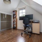 Laminaatvloer, Velux dakraam met elektrische bediening en automatisch rolluik en spots in plafond.
