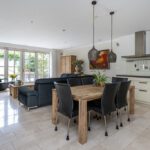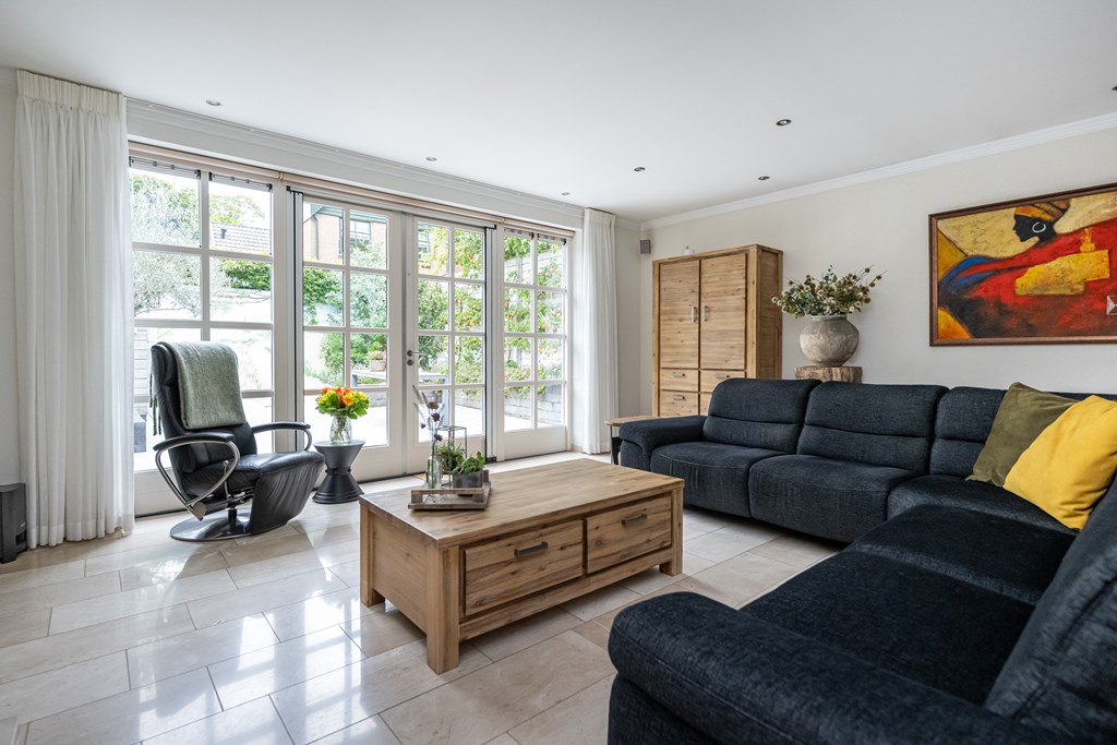 De woonkamer is een heerlijke plek om thuis te komen. Dankzij de dubbel openslaande deuren naar de achtertuin loopt binnen naadloos over in buiten. Op mooie dagen zet u de deuren open en geniet u van een fijne verbinding met de tuin, waardoor de leefruimte nog groter en lichter aanvoelt. Of u nu rustig wilt ontspannen, gezellig wilt dineren met vrienden of met het gezin wilt genieten van het dagelijkse leven, deze woonkamer biedt daar alle ruimte en mogelijkheden voor.