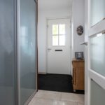 Marmerenvloer voorzien van vloerverwarming, meterkast en een kastenwand met schuifdeuren.