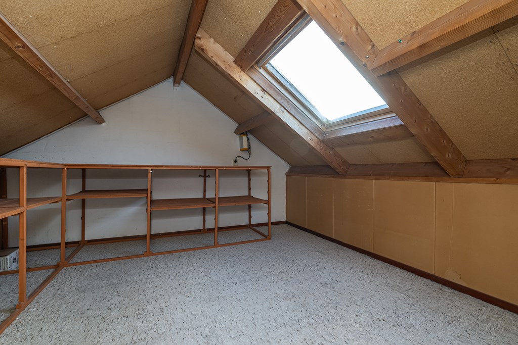 Dakvenster, radiator en tapijt.