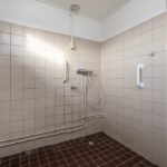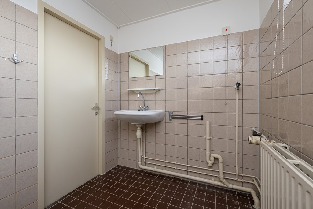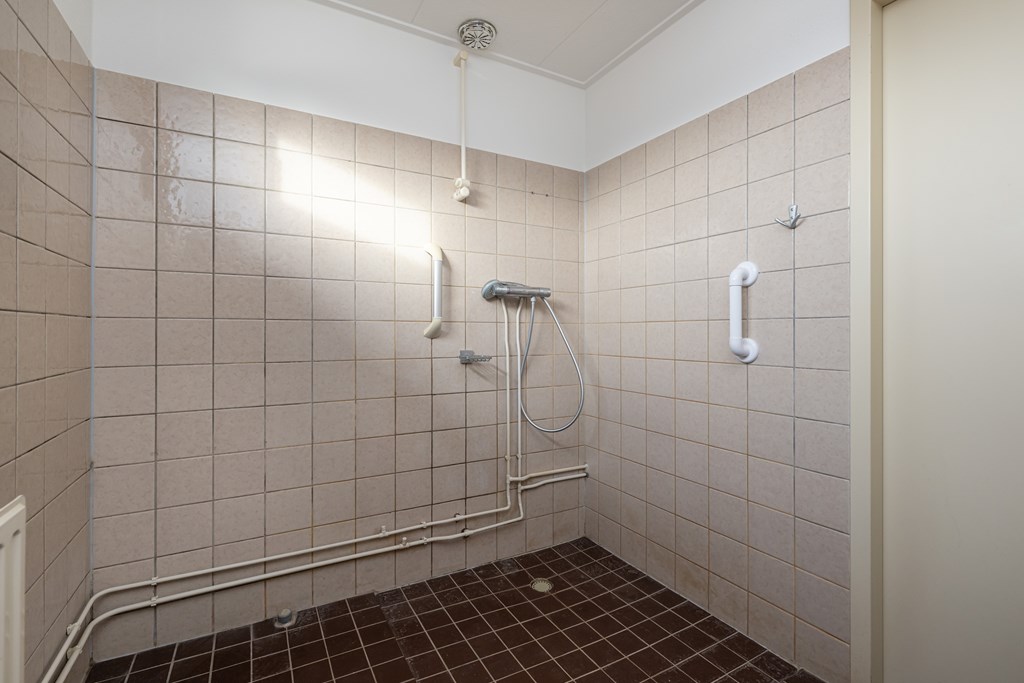 Douche, wastafel, radiator, ¾ betegeld en witgoedaansluitingen