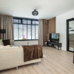 Laminaatvloer en toegang tot achtertuin.
