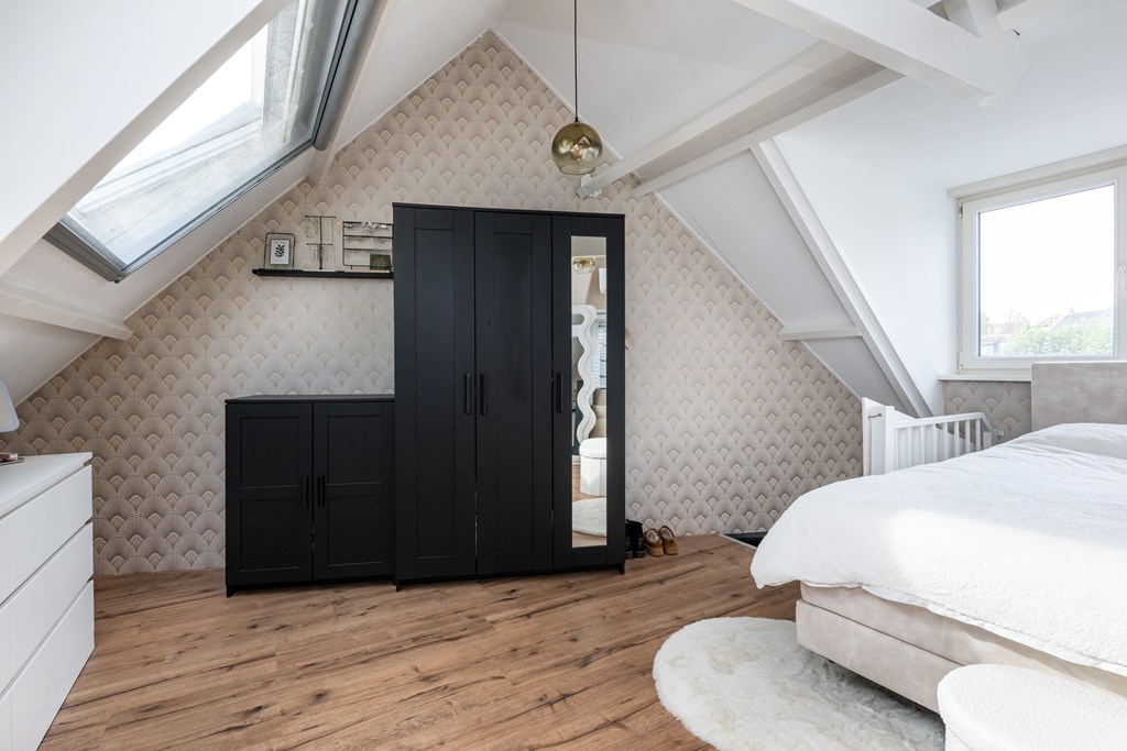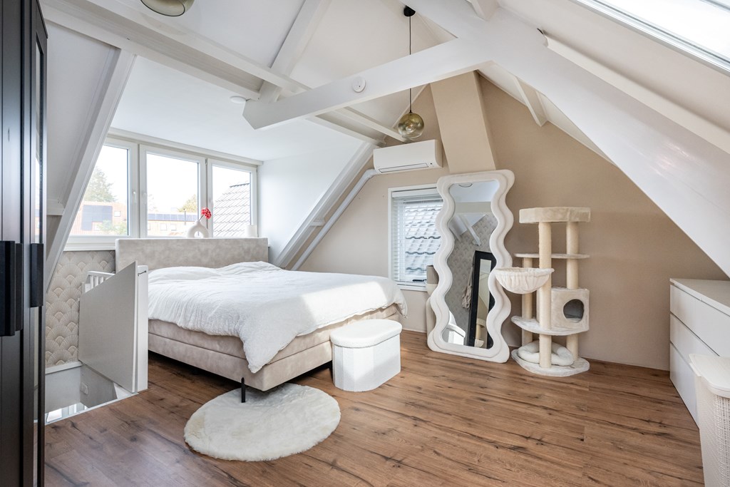 Laminaatvloer, airconditioning (verwarmen, koelen en ontvochtigen), dakkapel met kunststof kozijn draai/kiep en Velux dakvenster.