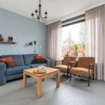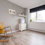 Marmoleumvloer met vloerverwarming en rolluiken.