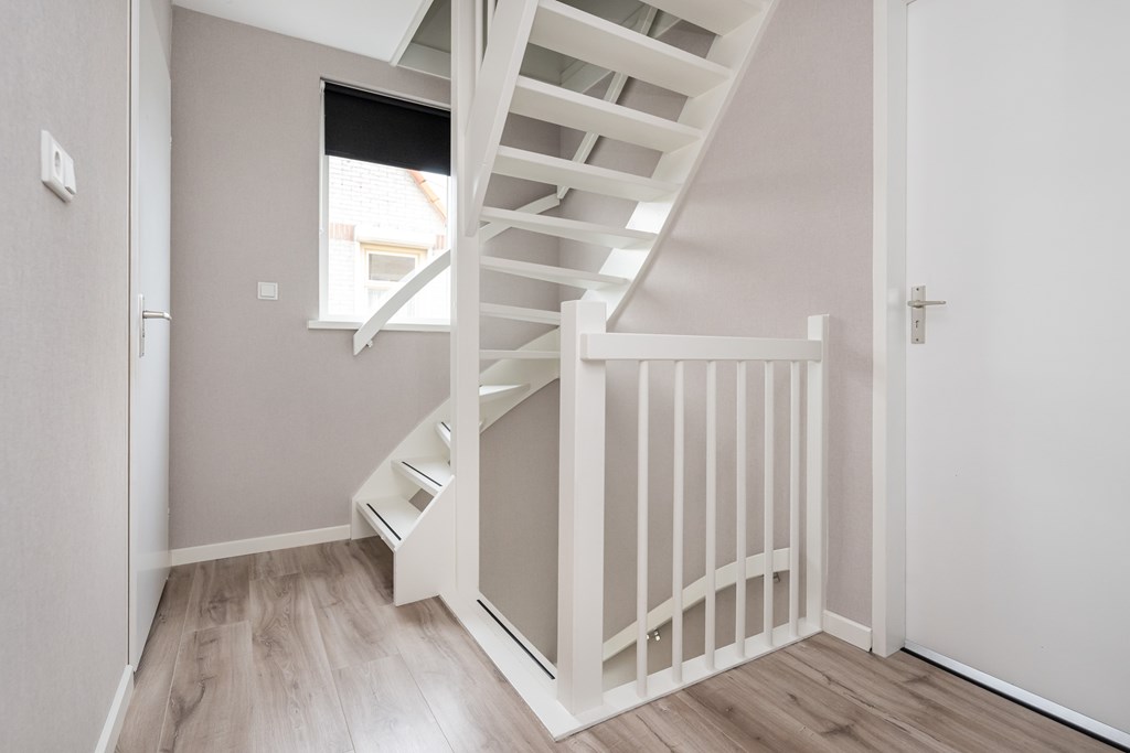 Laminaatvloer en trapopgang naar zolder.